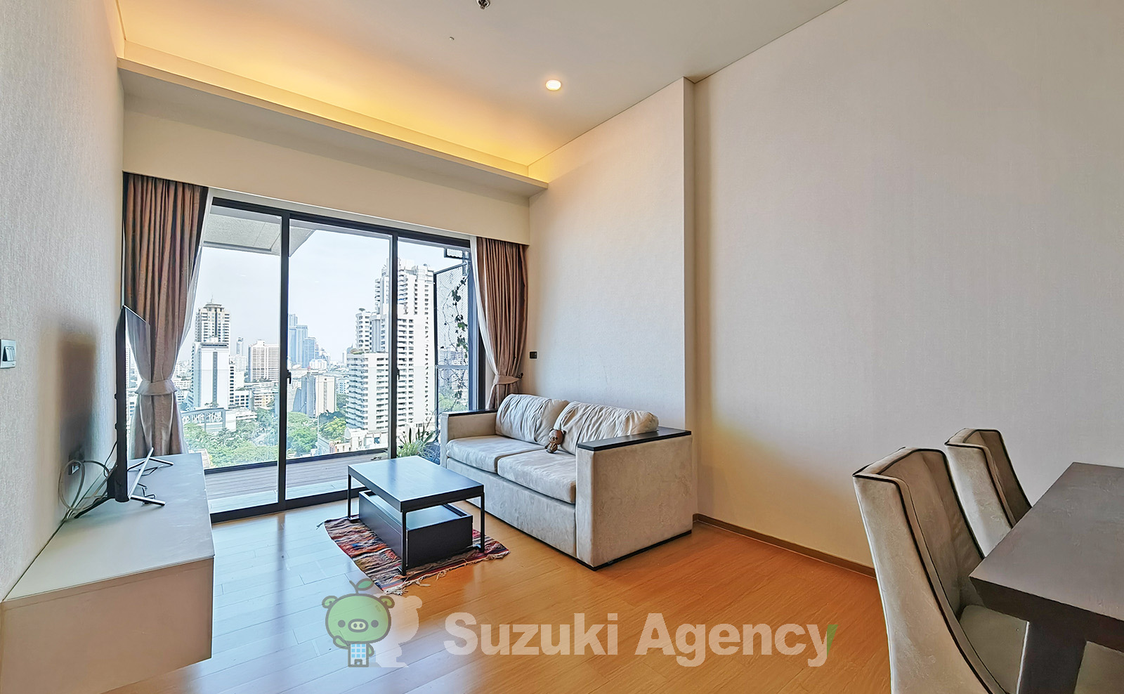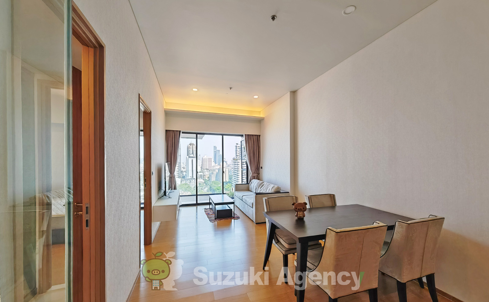 Siameseも熟成されて来たのか、質の良い仕上がり、受けの良いコンセプトで提供されています。プライベートリフトも採用し、決められたエレベーターを降りた先が玄関となって、洗濯機、靴箱が置かれています。その先にもう一つ扉が設けられ、キッチンダイニングと開け、奥がリビングで先のベランダも、すべてクリアボードで視界が開けているのです。車窓とよく聞きますが、室窓と名づけますが、ここの部屋からの雰囲気は過去最高かもしれません。