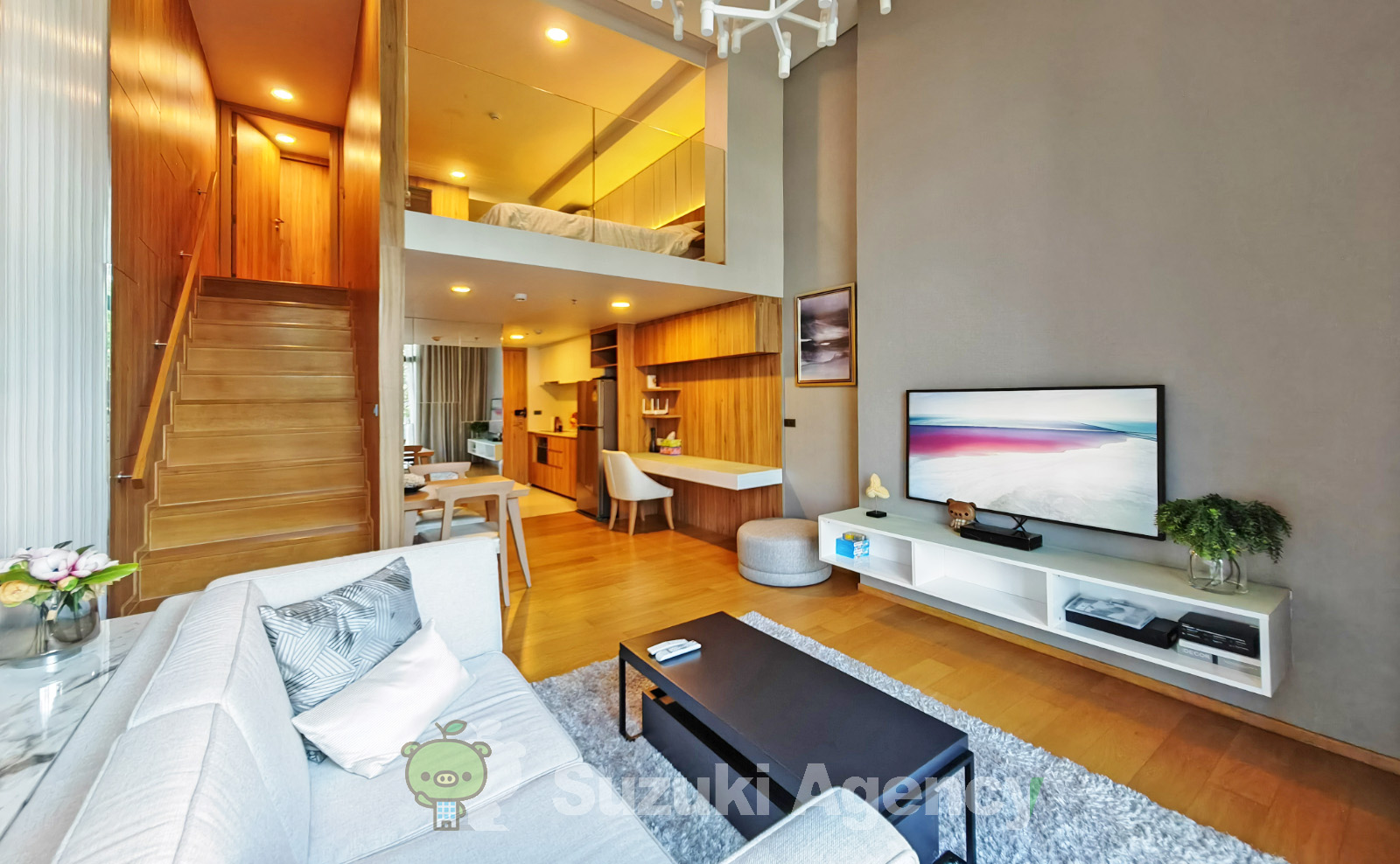 1ベッドが45平米からの事もあって、全体的に広く狭さは感じません。レイアウトも考えられ、寝室はガラスのスライド戸で仕切られ、極限まで空間を詰め、その分、リビングダイニングが広いレイアウトになっています。メゾネットは寝室の空間がなくなり、上に寝室が作られることにより、リビングが2階まで吹き抜け、より明るくなっています。ベランダに一本の木が植えられ、自動で放水されるそうです。3ベッドまであるので、家族も対象にるでしょう。