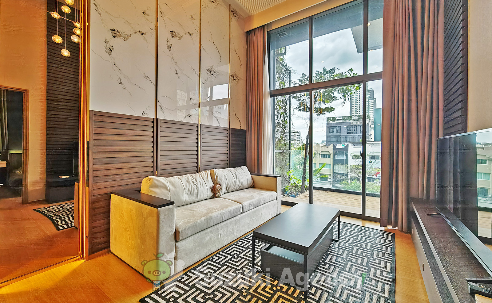 Siameseも熟成されて来たのか、質の良い仕上がり、受けの良いコンセプトで提供されています。プライベートリフトも採用し、決められたエレベーターを降りた先が玄関となって、洗濯機、靴箱が置かれています。その先にもう一つ扉が設けられ、キッチンダイニングと開け、奥がリビングで先のベランダも、すべてクリアボードで視界が開けているのです。車窓とよく聞きますが、室窓と名づけますが、ここの部屋からの雰囲気は過去最高かもしれません。