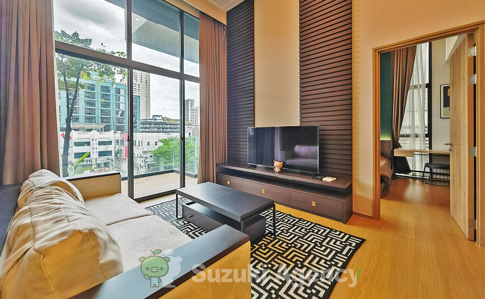1ベッドが45平米からの事もあって、全体的に広く狭さは感じません。レイアウトも考えられ、寝室はガラスのスライド戸で仕切られ、極限まで空間を詰め、その分、リビングダイニングが広いレイアウトになっています。メゾネットは寝室の空間がなくなり、上に寝室が作られることにより、リビングが2階まで吹き抜け、より明るくなっています。ベランダに一本の木が植えられ、自動で放水されるそうです。3ベッドまであるので、家族も対象にるでしょう。