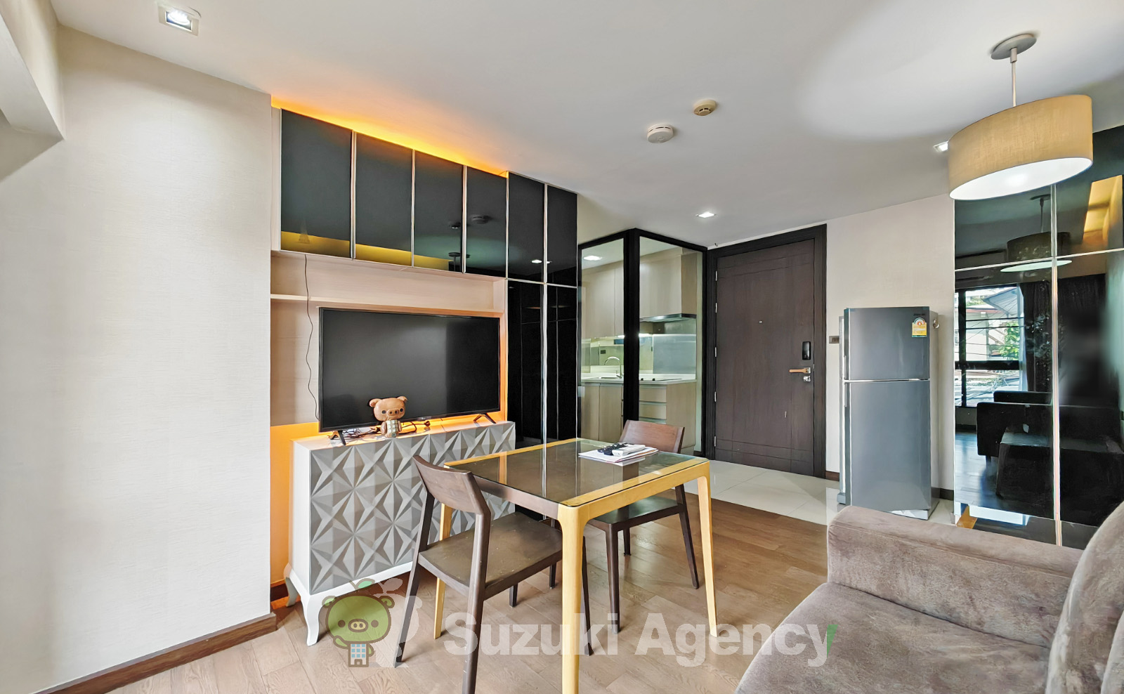 トンローソイ17、最近では「ザ コモンズ」が出来て、少しは知れ渡るようになりました、こちらの通りに、2012年に8階建コンドが完成いたしました。向かいに綺麗なタイ料理店、突き当たりには日系幼稚園、その先の交差点に日本村と日系クリニック、徒歩5分圏内にスーパー、飲食店、塾等、日本の看板が特に目に付くでしょう。当社、Webだけ見られた方だけに知らせますが、あるサービスアパート内を通れば、スーパーにより早く着く事が出来るのです。